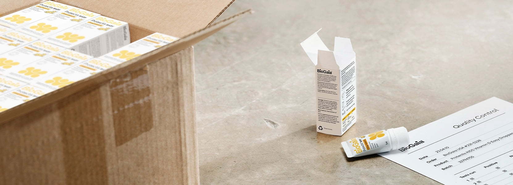 We recommend giving your baby our Protectis Baby Drops daily. The recommended dose for our probiotic baby drops is 5 drops daily administered by a spoon.